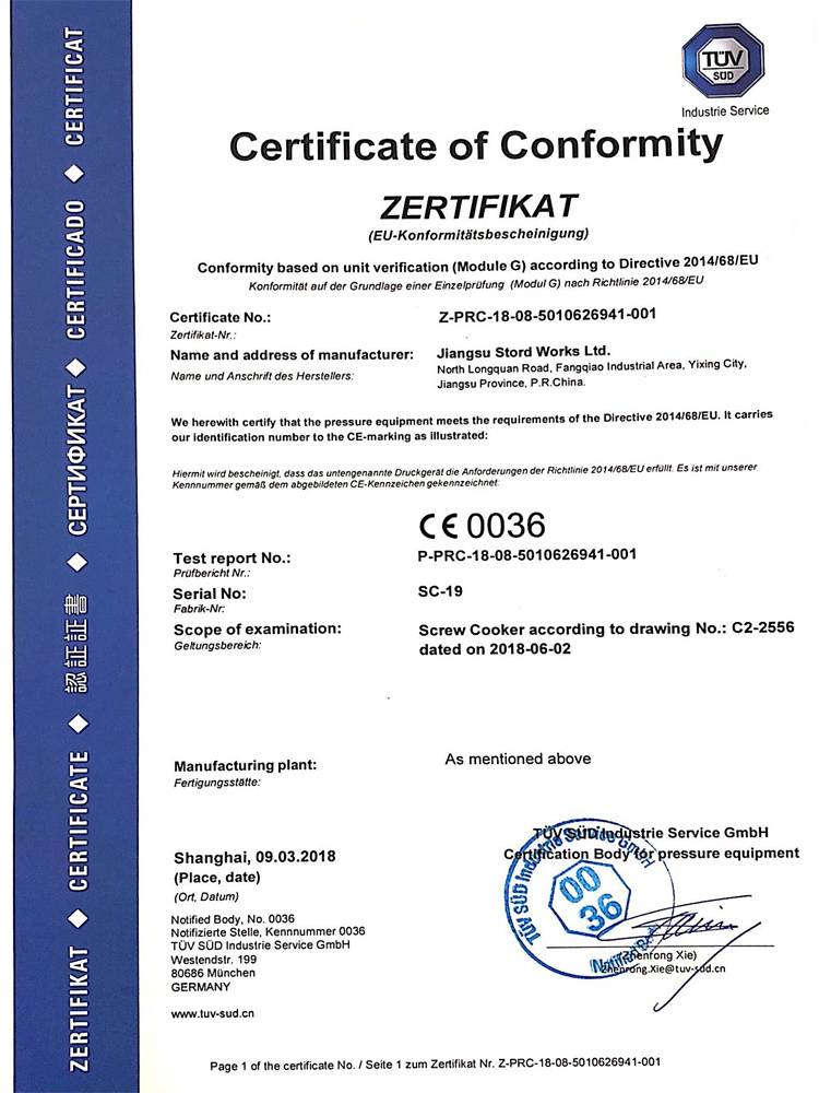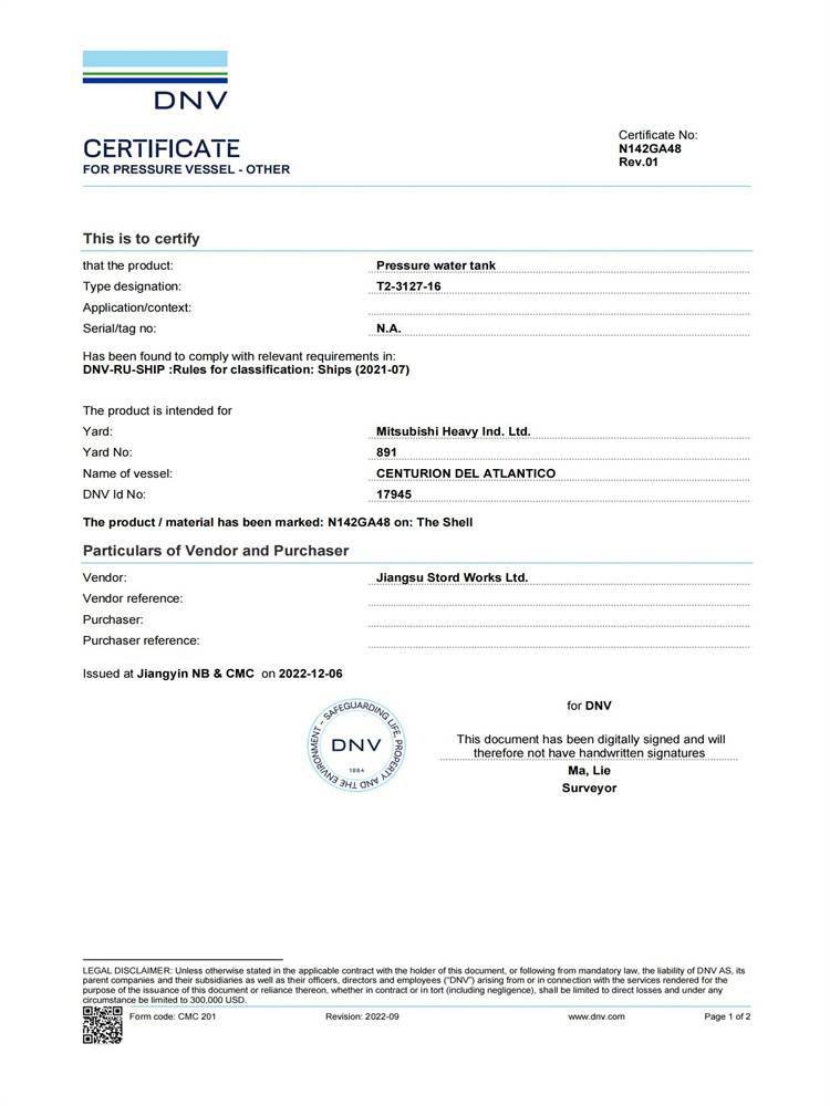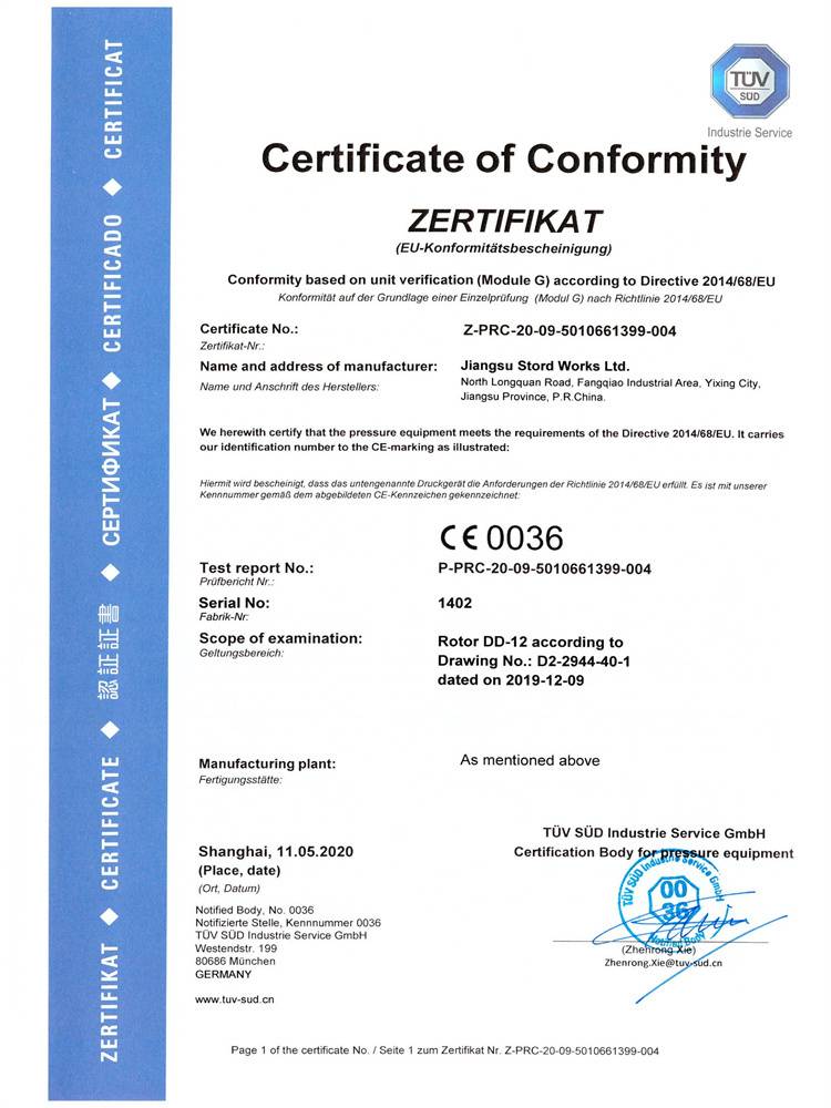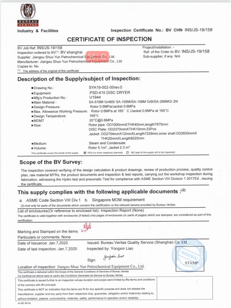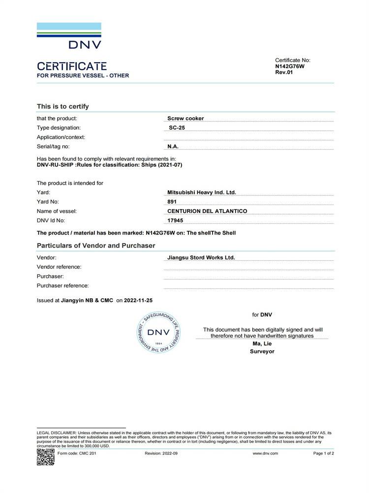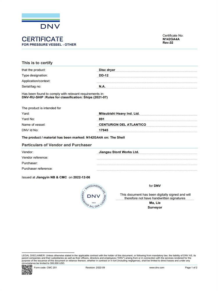 DD-12 圆盘干燥机 DNV 船级社认证证书